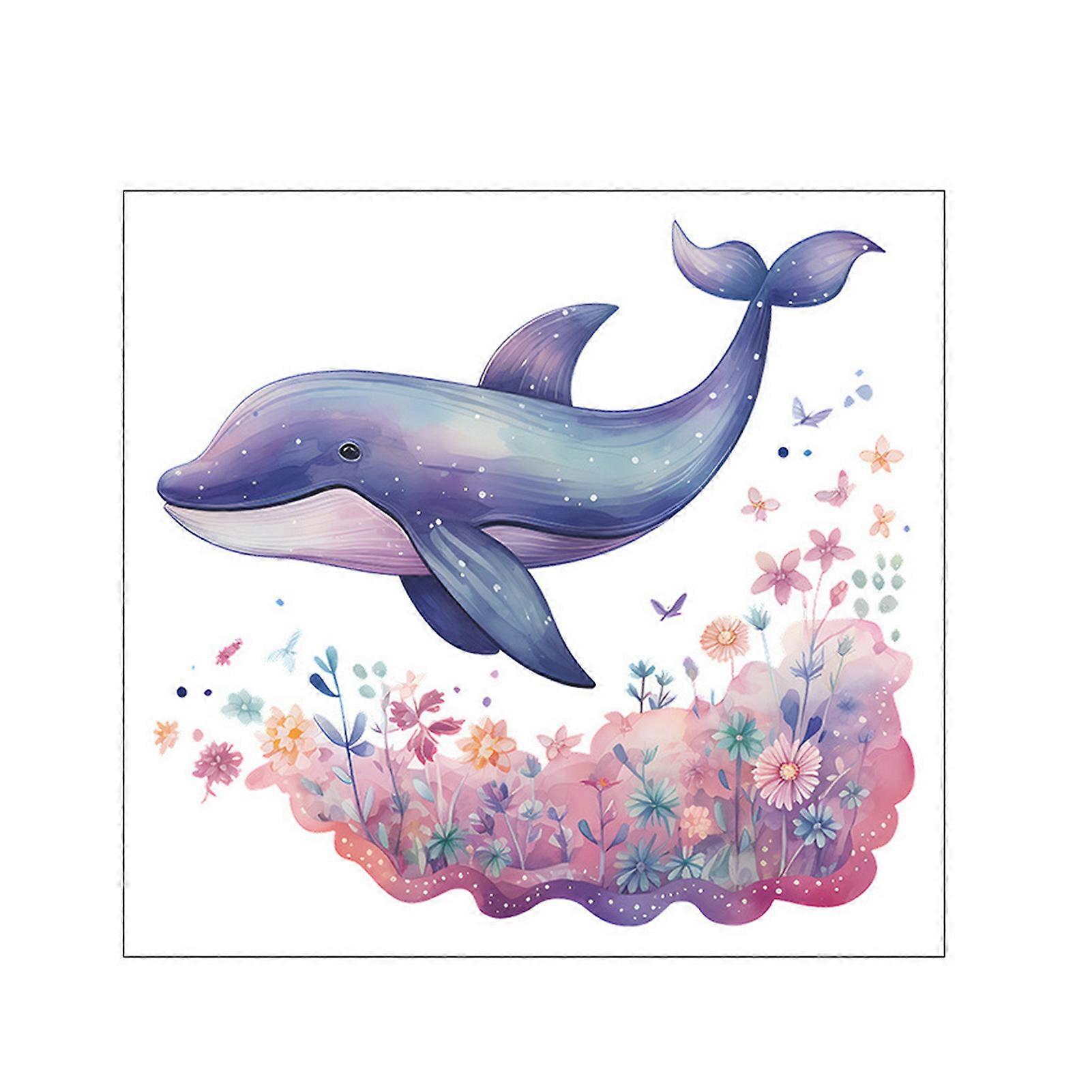 Cartoon Whale Flower Toilet Sticker Removable Self-adhesive Waterproof PVC Living Room Wall Art Bathroom Toilet Lid Decoration Decal