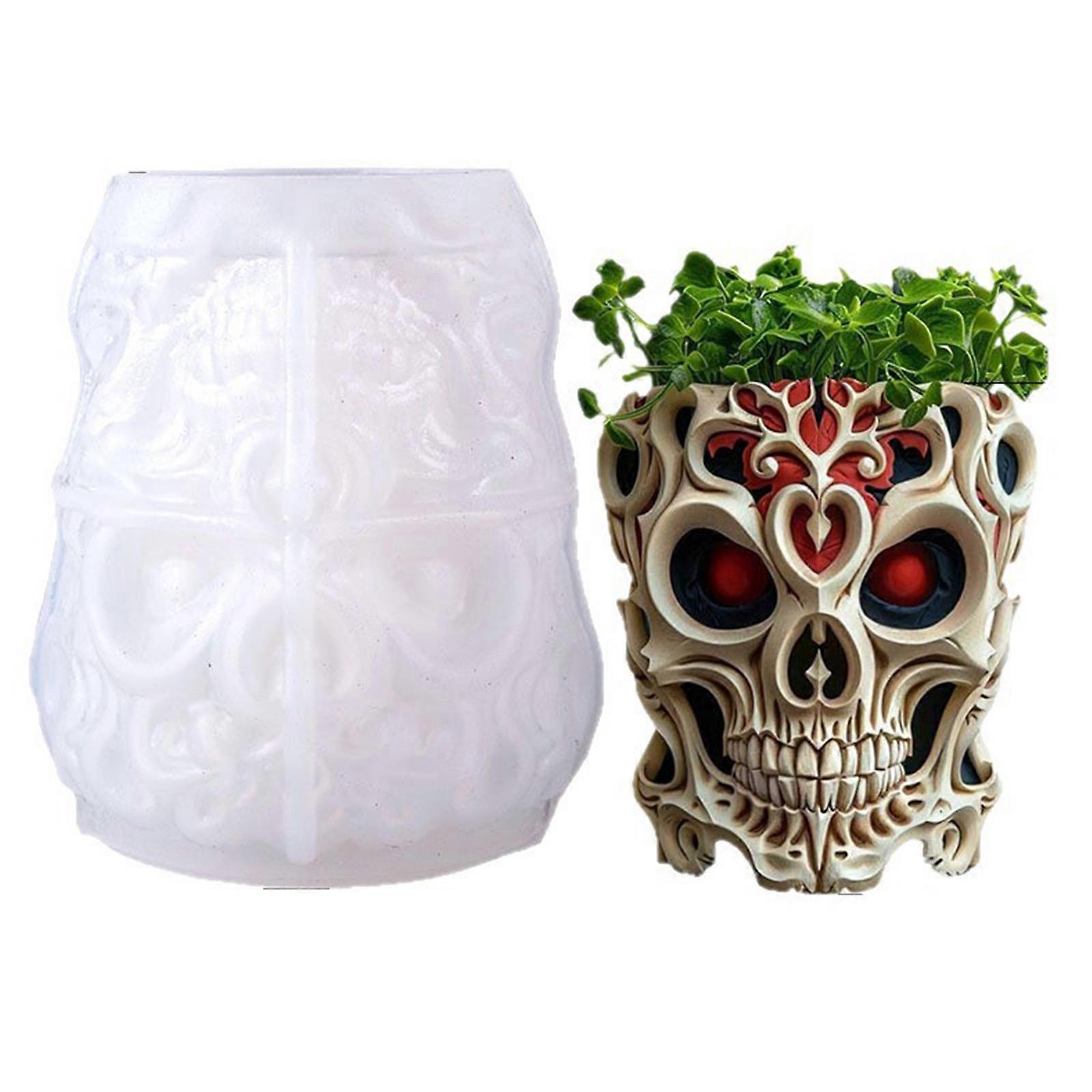 Reusable Silicone Skull Mold Crafting Jewelry Container Candle Cup Planters Suitable for Resin Cement Concrete Materials Multicolor