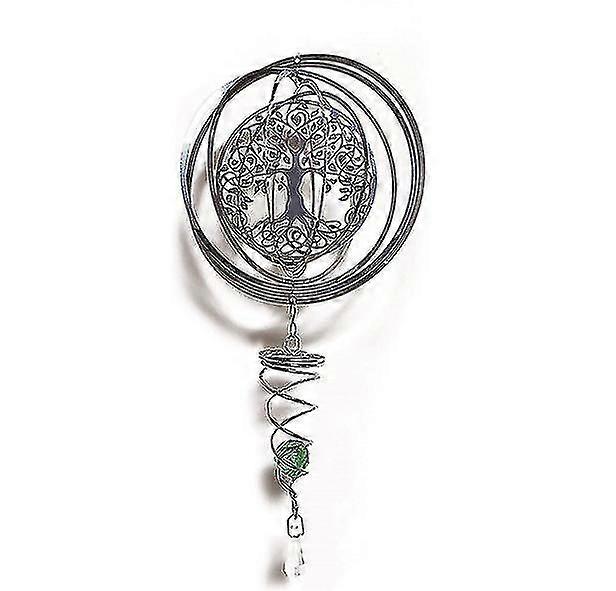 3d Tree Of Life Wind Spinner Hanging With Gazing Ball Spiral Tail H