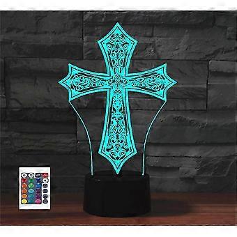 3D Cross of God Remote Control 16 Color Night Lights Illusion Acrylic LED Table Bedside Lamp Children Bedroom Desk Decor Birthday Gifts Toy