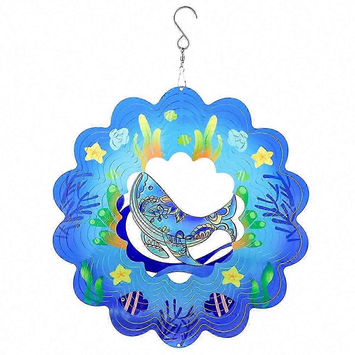 3D Wind Spinner Cetacean 12Inch Metal Kinetic Art Deco Hanging Decor for Garden Indoor Outdoor