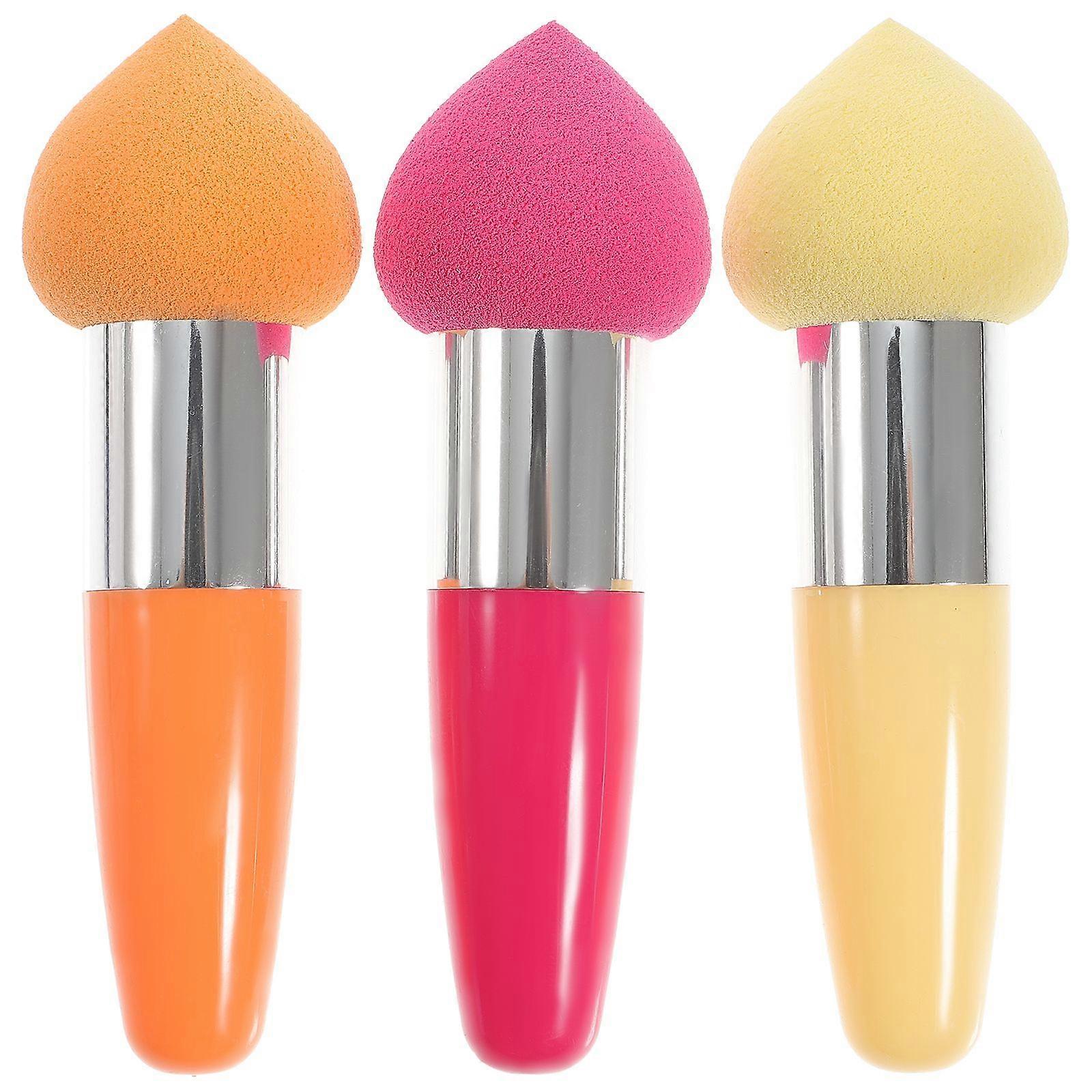 3PC Water Droplet Shaped Women Cosmetic Liquid Cream Foundation Concealer Sponge Lollipop Brush (Red+Blue+Skin)