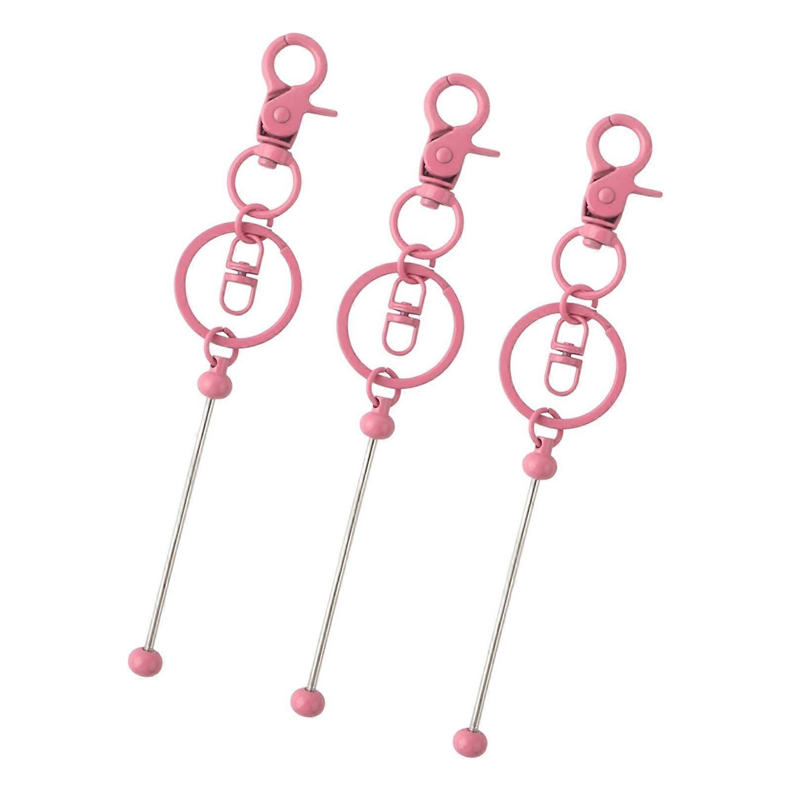 3Pcs Beaded Keyring Bars Crafting DIY Keychain Making for Family Kids Friend pink