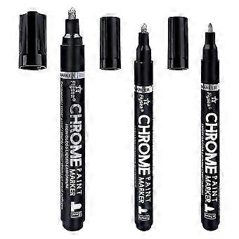 3pcs Silver Liquid Mirror Chrome Markers, Permanent Reflective Mirror Liquid Chrome Paint Pens Set
