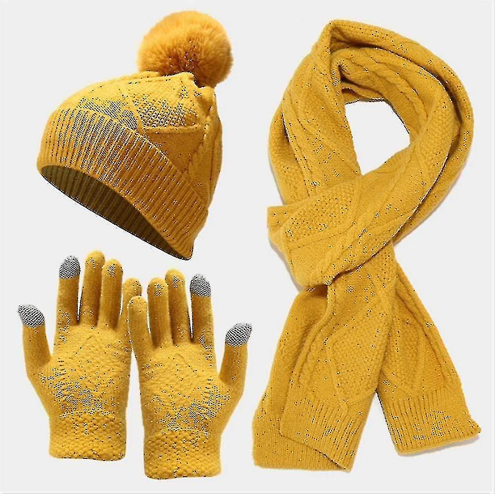 3pcs/set Hat Scarf Gloves Winter Warm Beanie Hat Cable Knitted Long Scarf Gloves
