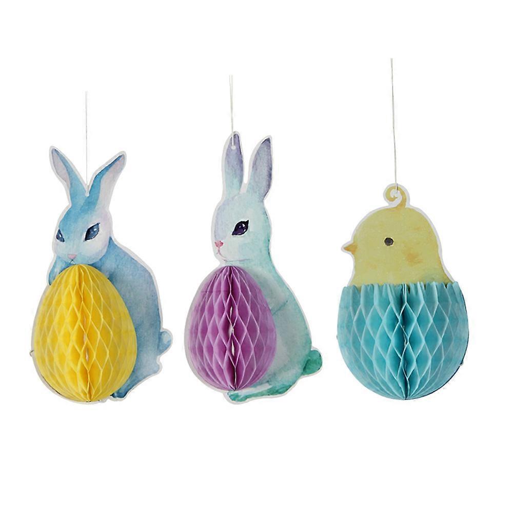 3pcs Creative Paper Animal Honeycomb Ball Pendant Decoration Rabbit Hanging Bunny Pendant Ornament Easter Party Favors