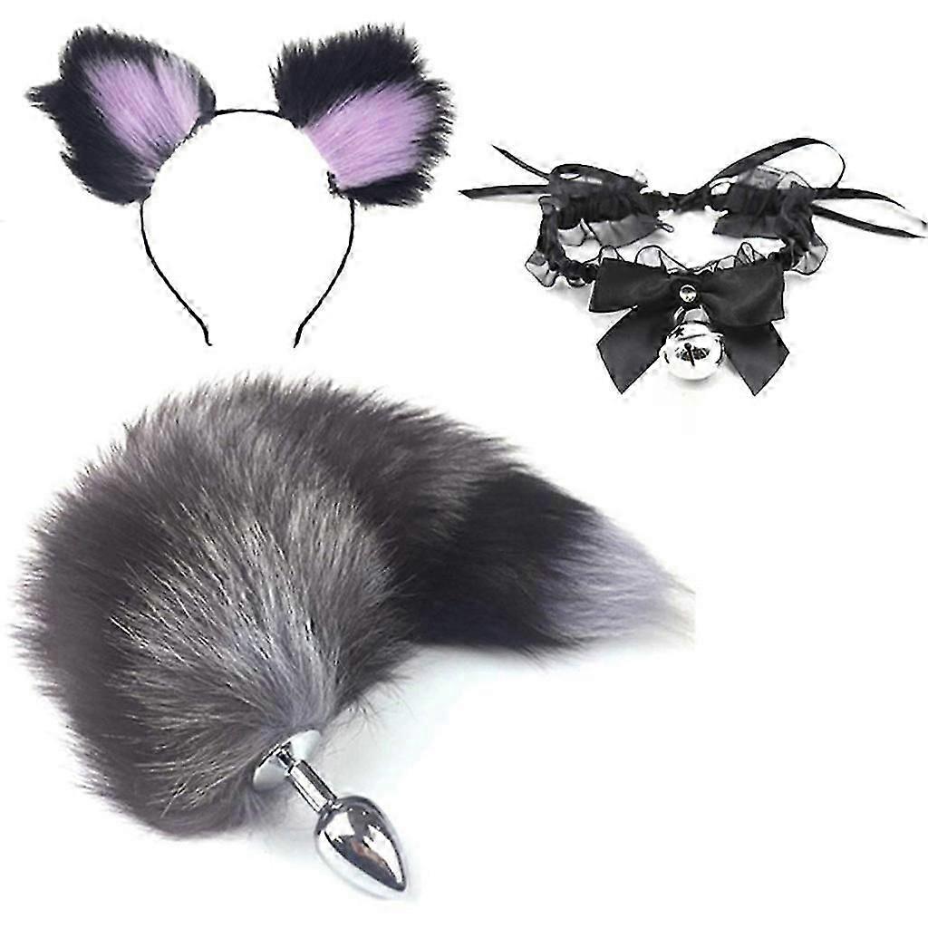 3Pcs Removable Unique Tail Butt Plug Set Lace Collar Bell for Cat Ears Headband Hair Accessories for Women Cosplay Propsn