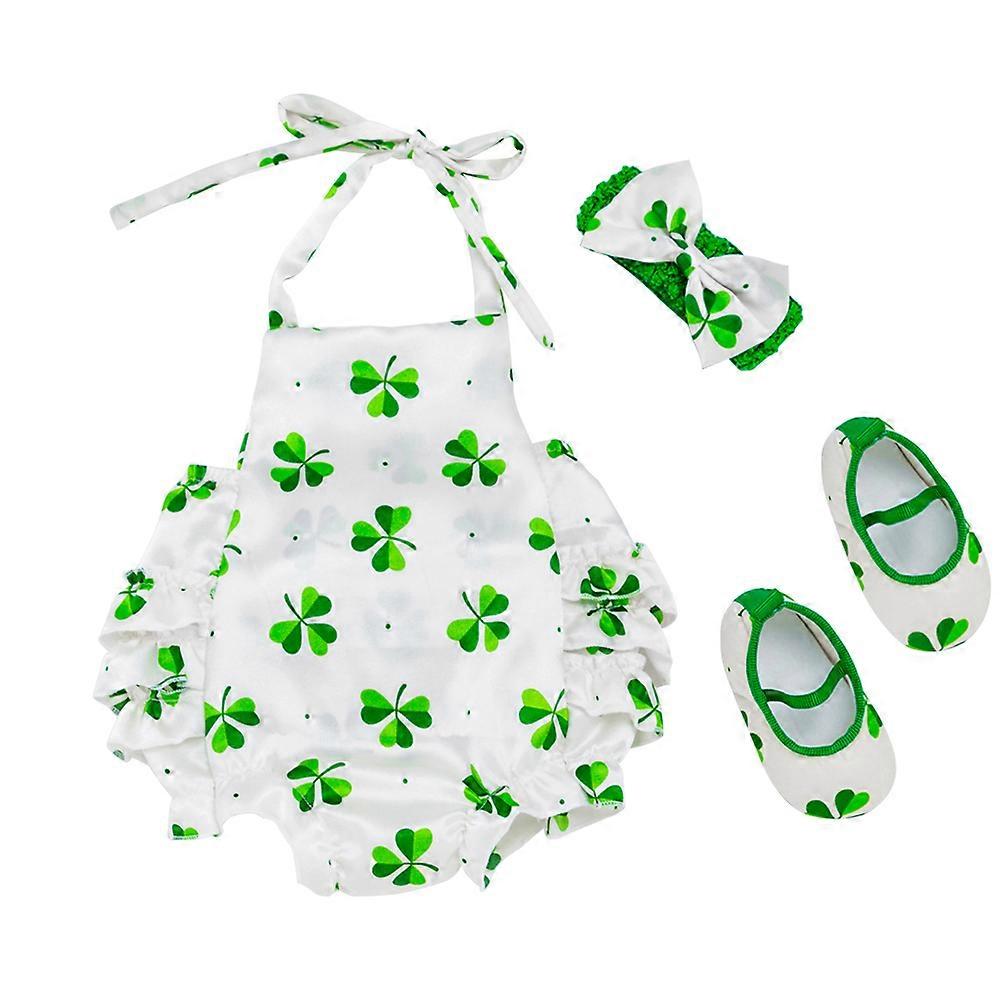 3pcs St. Patrick's Pattern Outfits Newborn Toddler Kid Girl Romper Jumpsuit and Headband Clothes Set(80,12-24 Month)