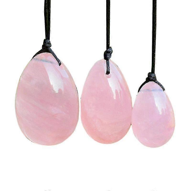 3pcs Drilled Crystal Quartz Jade Egg For Kegel Exercise Pelvic Floor Muscles Vaginal Exercise Yoni Egg Health Care For Women Gift (pink)