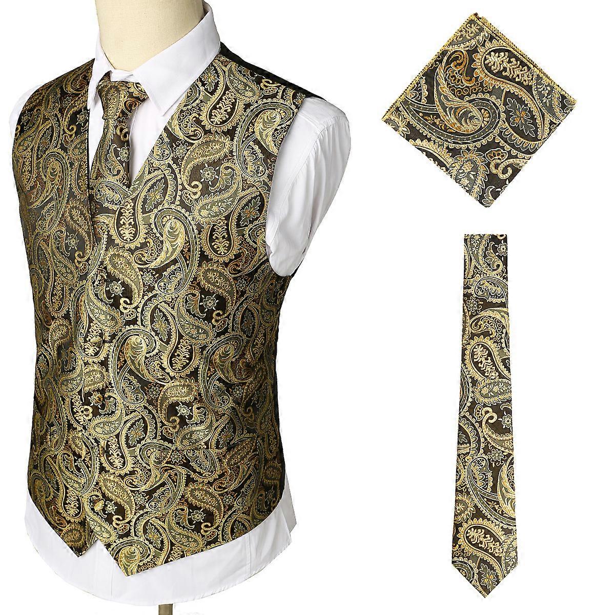 3PCS Formal Men Vest Suit, Waistcoat Set, Wedding Casual Vest Printed Pattern Chest Tie