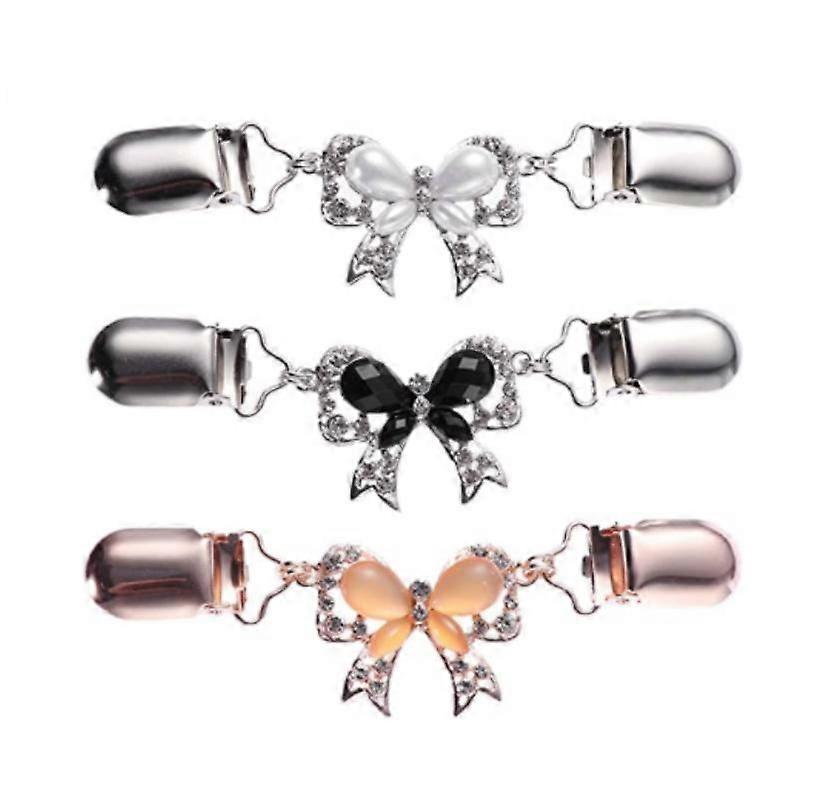 3pcs Sweater Chain Creative Crystal Bow Sweater Clip Cardigan Clip