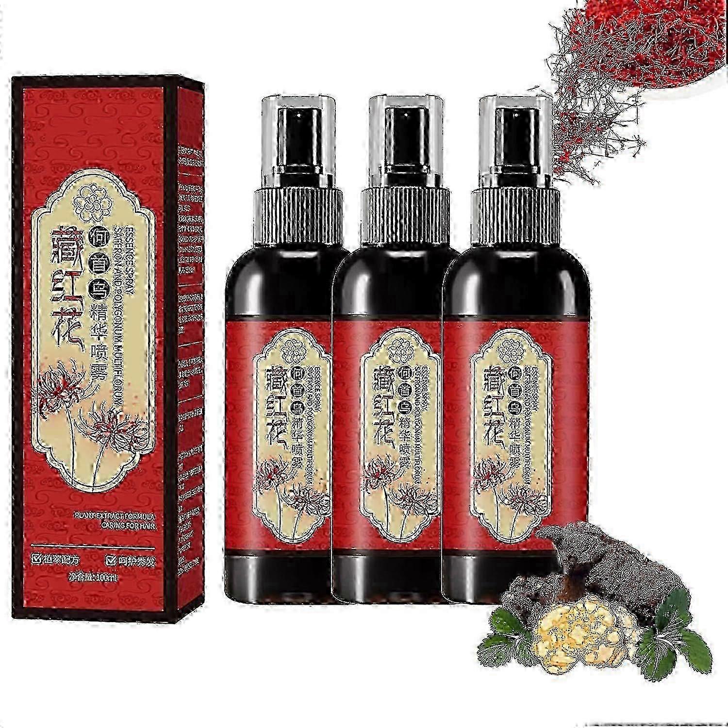 3X Saffron Essence Spray, Herbal Extracts Hair Serum, Saffron And Polygonum Multiflorum Essence Spray, Anti-Lost Strengthen Hair Root, Non-Frizzy New