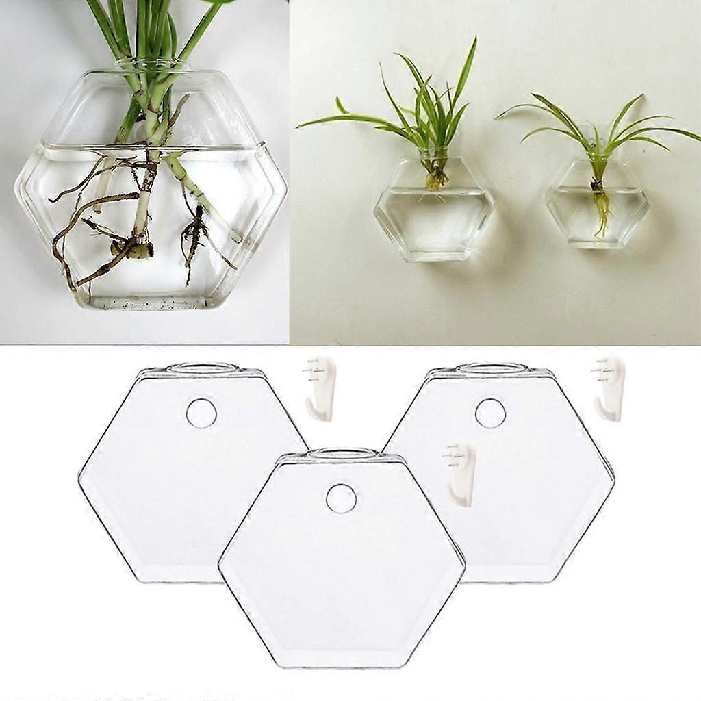 3x Wall Mount Planter Glass Hydroponic Vase Plant Pot Terrarium Hexagon 13cm