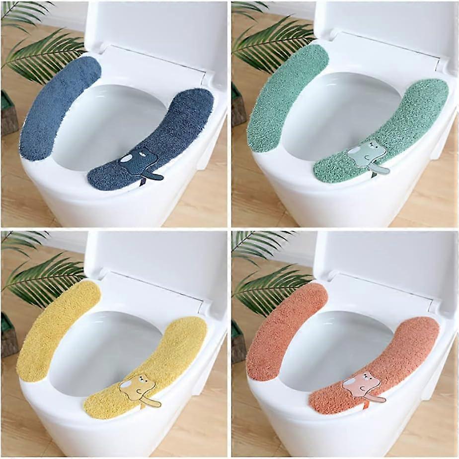 4Pairs Plush Warm Toilet Seat Cover Washable and Reusable Toilet Seat Pads Cushion for Winter, Fits All Toilet Seats