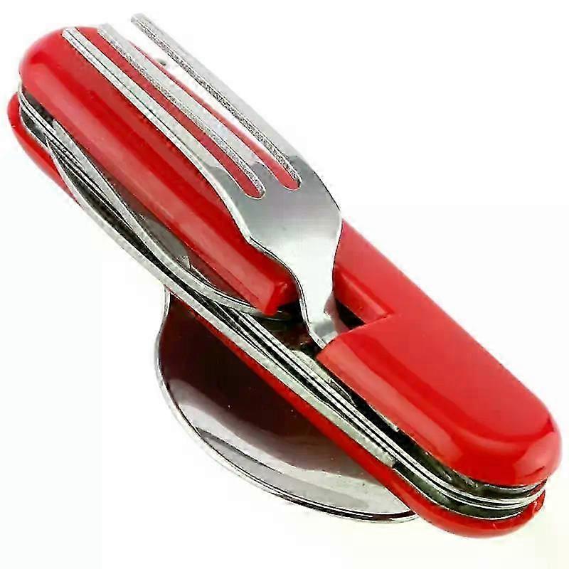 4 In 1 Multifunctional Outdoor Tableware Stainless Steel Foldable Fork Spoon Knife Picnic Camping Hiking Travelling Dinnerware 26s