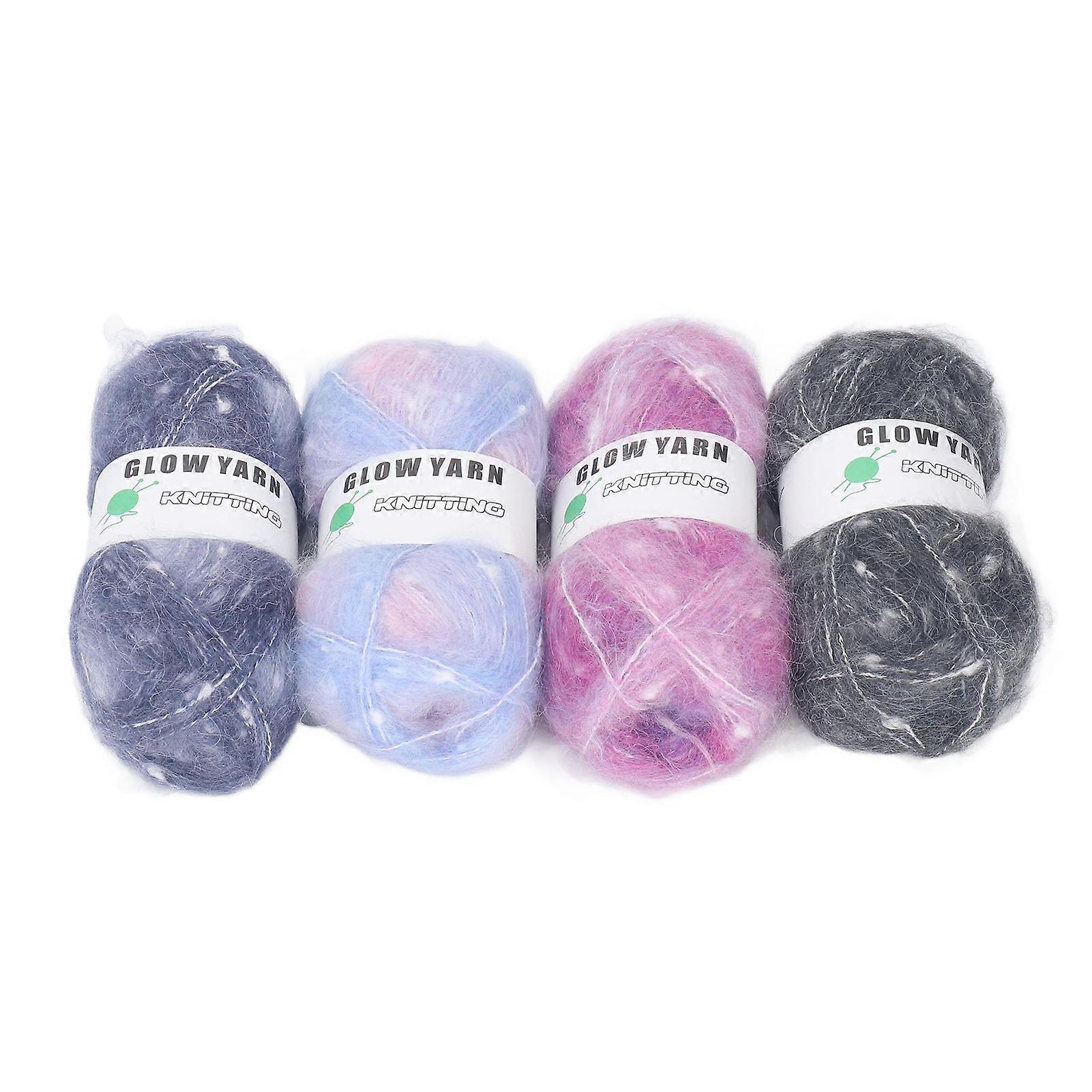 4 Rolls Glow Yarn 152yd Each Soft Handcraft DIY Luminous Knitting Crochet Yarn for Beginners Arts Crafts Type 2
