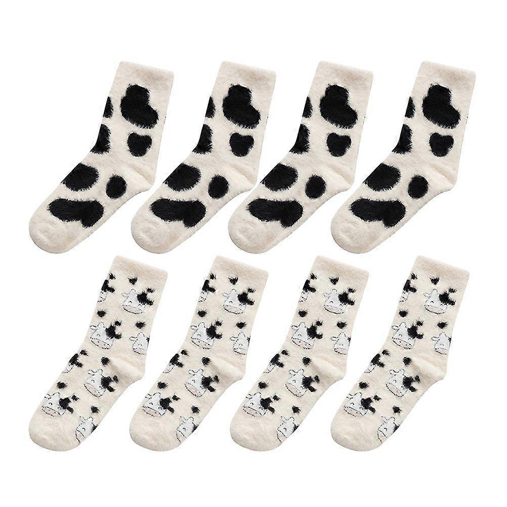4 Pairs Cute Socks Cow Fuzzy Socks Women Warm Socks Winter Socks Soft Cozy Fluffy Sock Thickened Cotton Crew Socks for Home (Cow Prints Pattern, Cow P