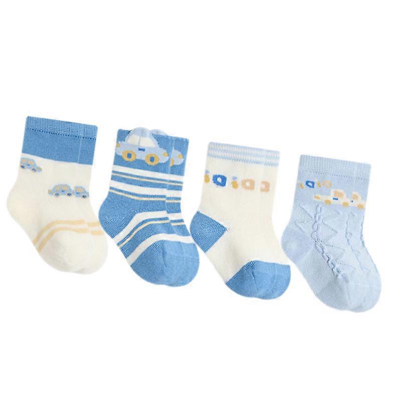 4 Pairs Breathable Kids Crews Socks Seamless Design Combed Cotton Socks Cartoon Prints For Daily Use Blue XL