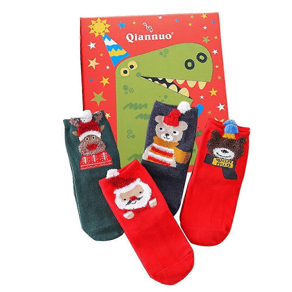 4Pairs Kids Christmas Cotton Socks Cartoon Design Unisex Breathable Comfortable Sports Socks For Winter Occasions