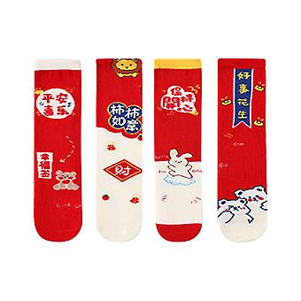 4 Pairs Kids New Year Socks Mid Calf Socks Soft Comfortable Lightweight Red Socks Chinese New Year for Good Luck Festive Gift