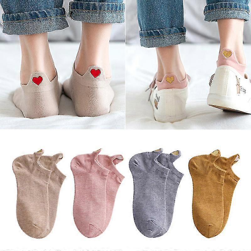 4 Pairs/lot Woman Cotton Ankle Socks Fashion Heart Embroidery Colorful Girls Sox Novelty Casual Summer Cute Short Socks