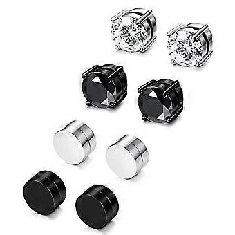 4 Pairs Stainless Steel Magnetic Stud Earrings for Men Women Non Piercing Clip on CZ Earrings 8MM