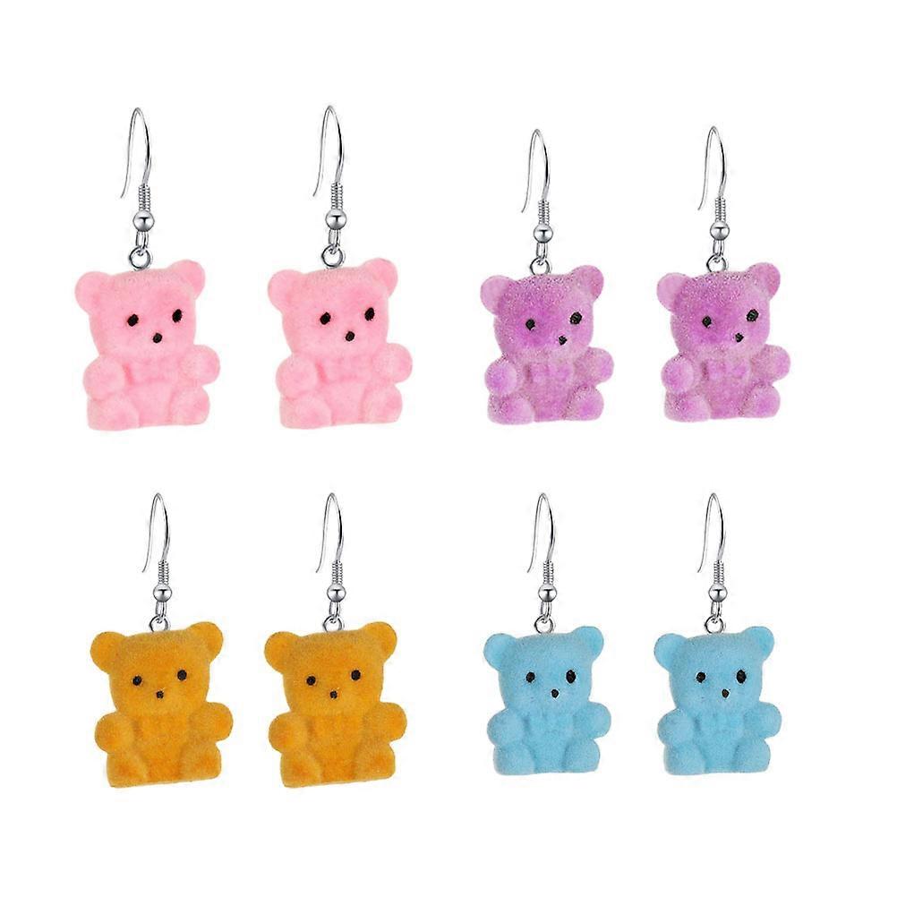 4 Pairs Girl Bear Earring Cartoon Resin Ear Decor Chic Ear Jewelry (Random Color)