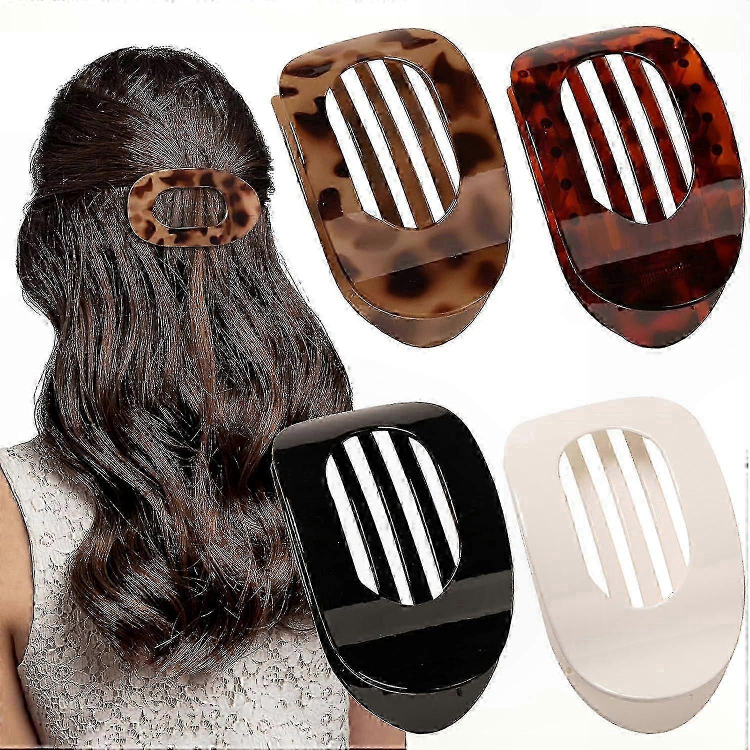 4 Pack Classic Hair Clips for Women, Durable Flat Barrettes for All Hair Types, Comfortable Round Claw Clips