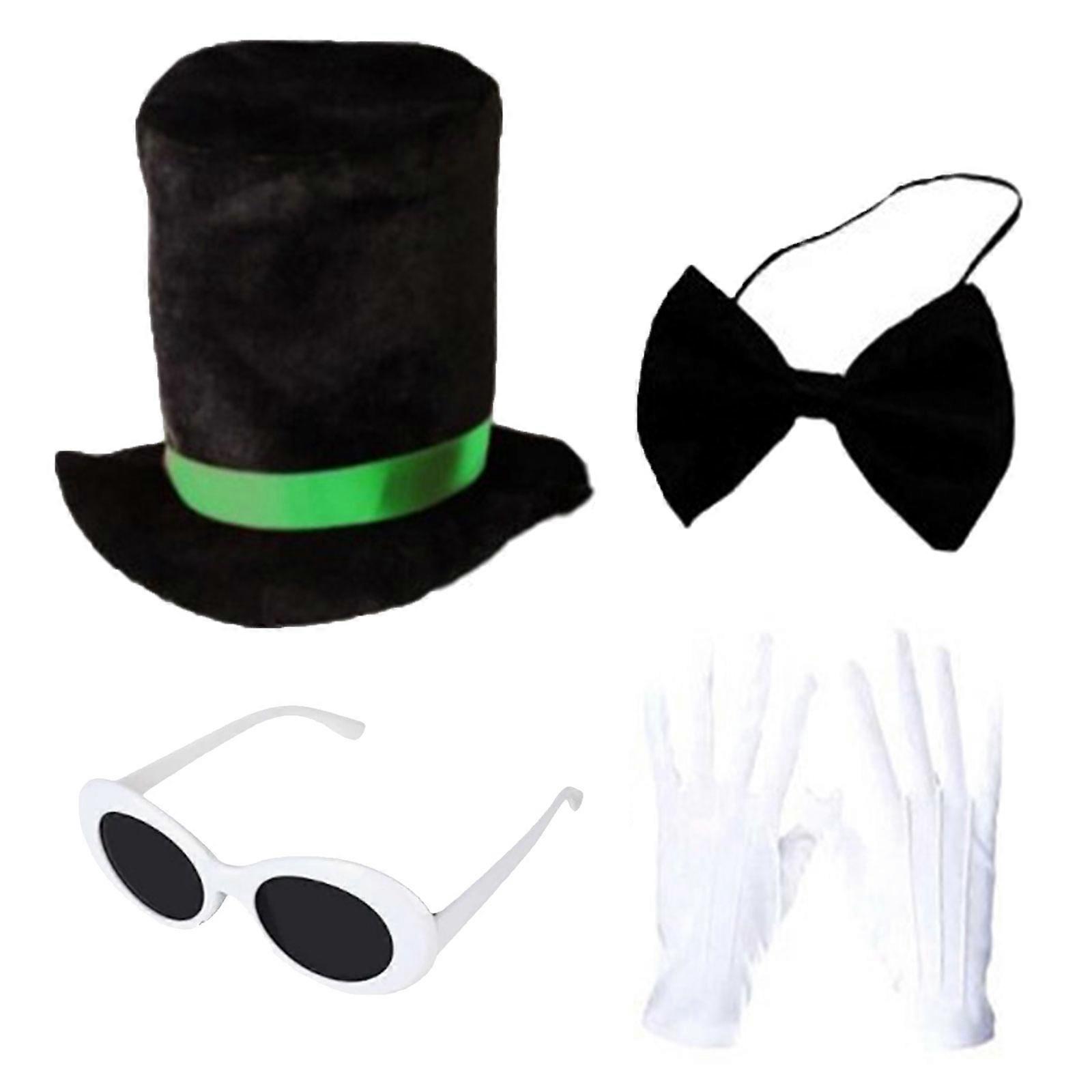 4Pieces Adult Top Hat Set with White Gloves Necktie Sunglasses Dressing Up Set Halloween Cosplay Costume Accessories Multicolor