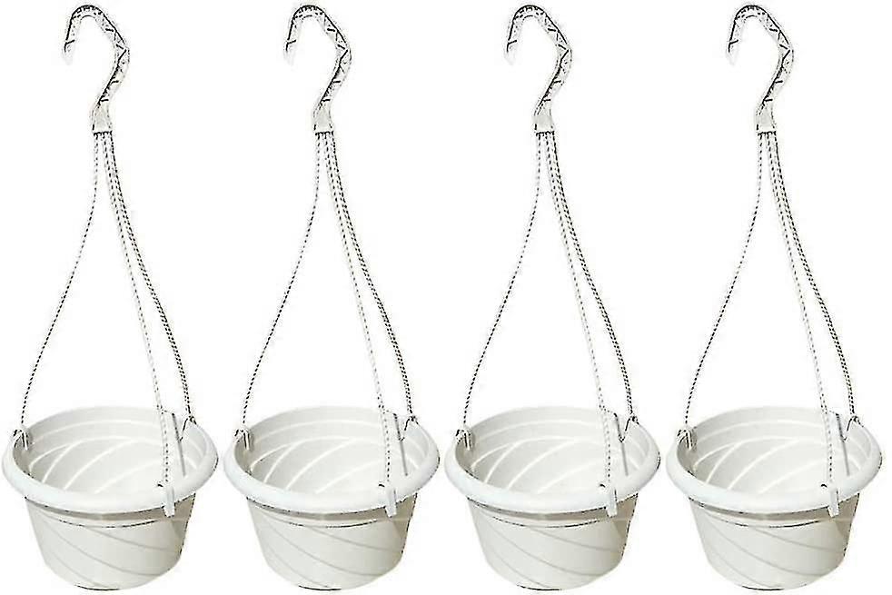 4 Pieces Plastic Hanging Flower Plant Pots Chain Basket Planter Holder Round Hanging Fence