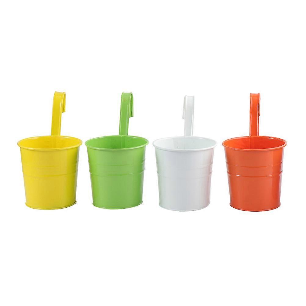 4pcs Iron Hanging Bucket for Storage with Drainage Holes Assorted Color Suitable for Balcony Decor
