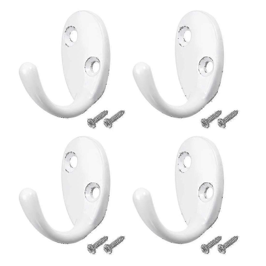 4 Pcs Wall Mounted Hook Robe Hooks Single Coat Hanger Hanging, Zinc Alloy, White