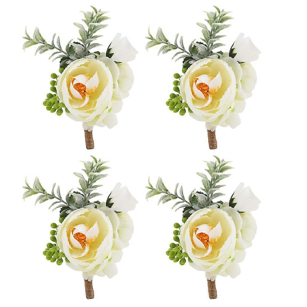 4Pcs Rose Wedding Corsage Boutonniere Bracelet Handmade Bridal Groom Brooch Pin Flower Decor