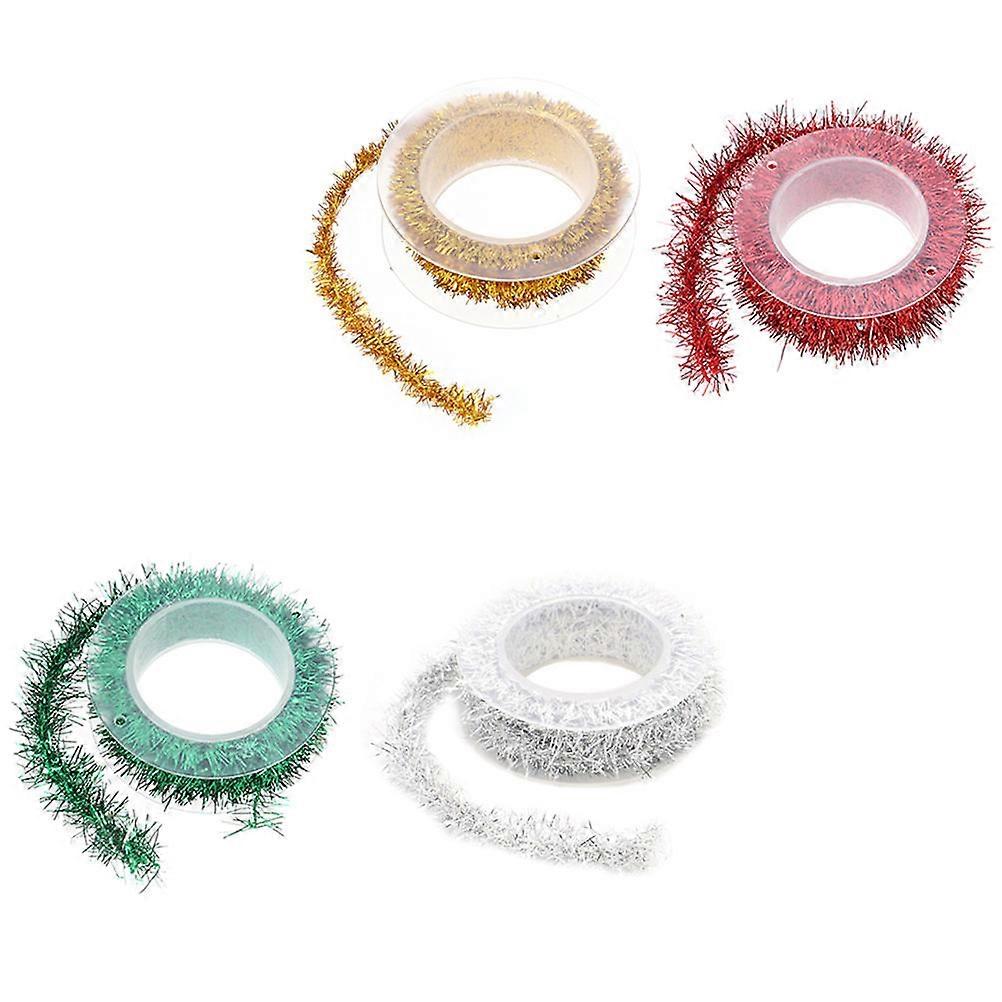 4pcs Christmas Tinsel Garland Reusable Metallic Curling Ribbons for Indoor Outdoor Tree Decor, Gift Wrapping & Party Decorations – Gold, Red, Green,