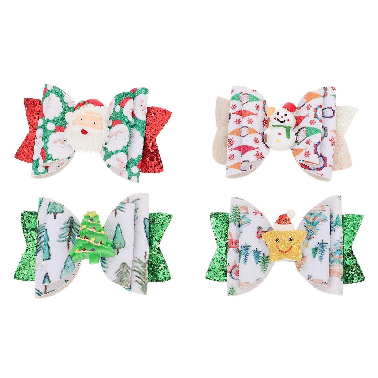 4pcs Christmas Kids Headdress Christmas Barrettes Christmas Bow Knot Hairpins