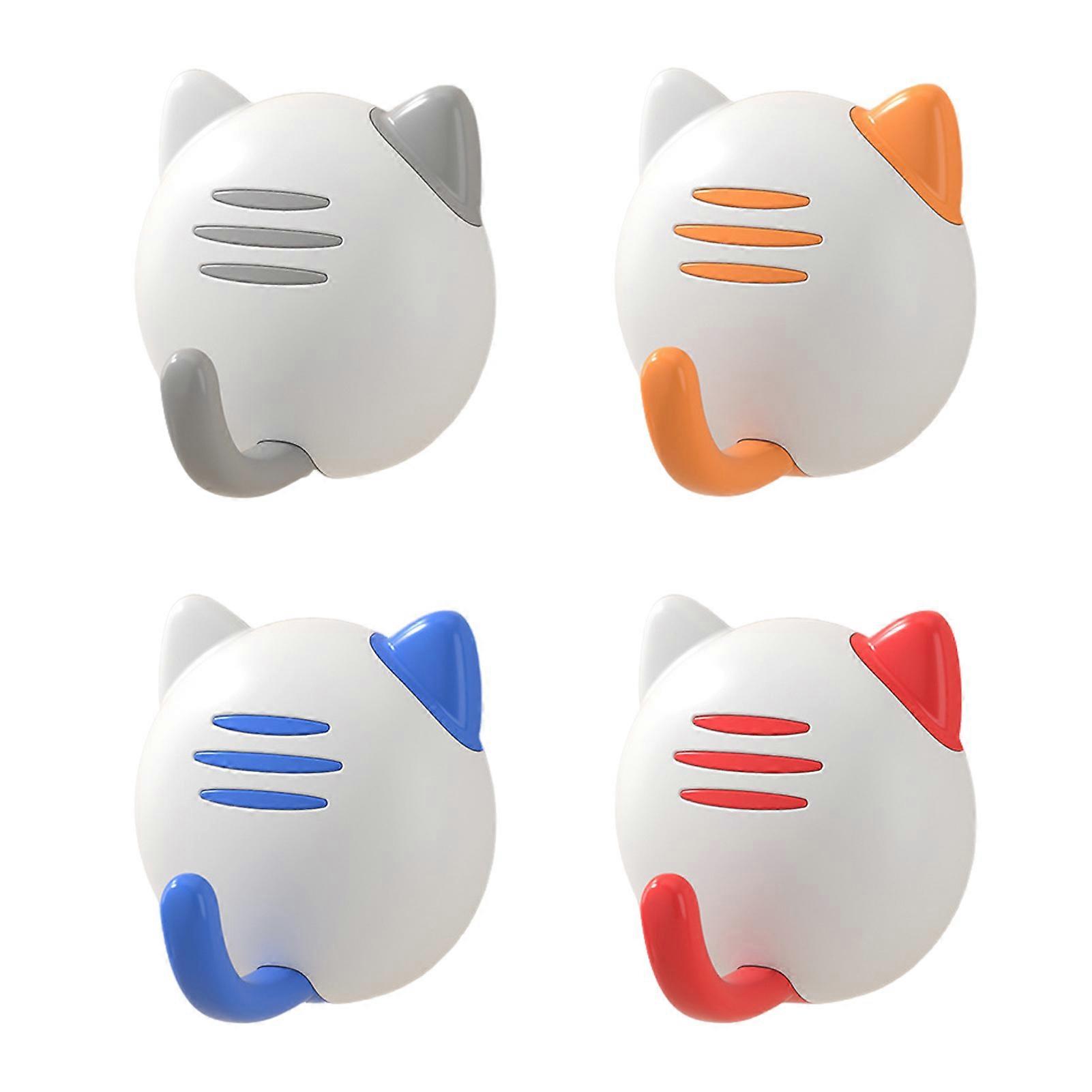 4Pcs Cute Cat Wall Hook No Drill Adhesive Modern Multifunctional Clothes Towel Umbrella Bag Door Back Hanger Bathroom Kitchen Supplies Jikaixiang