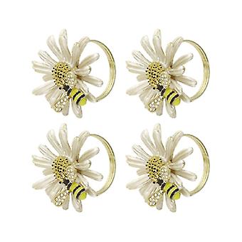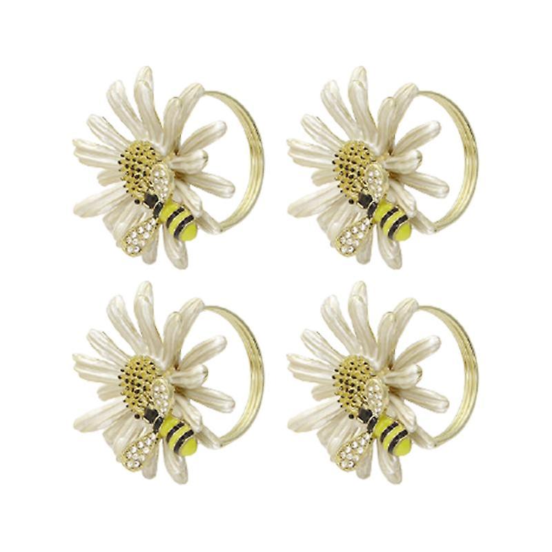 4Pcs Napkin Rings Adorable Anti-rust Alloy Spring Flower Bee Painted Napkin Buckle for Party