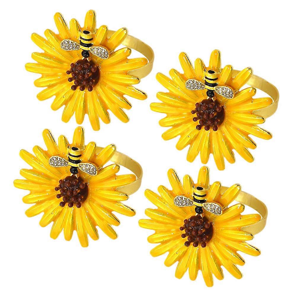4Pcs Bee Flower Napkin Rings Sunflower Napkin Ring Dinning Table Napkin Holder