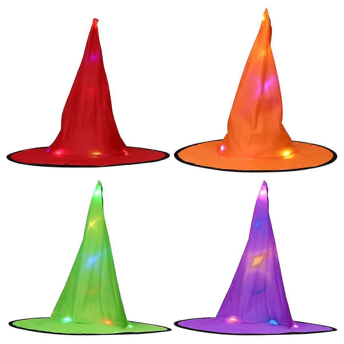 4pcs Halloween Light Caps Shiner Witch Hats Halloween Light Caps (Random Type)