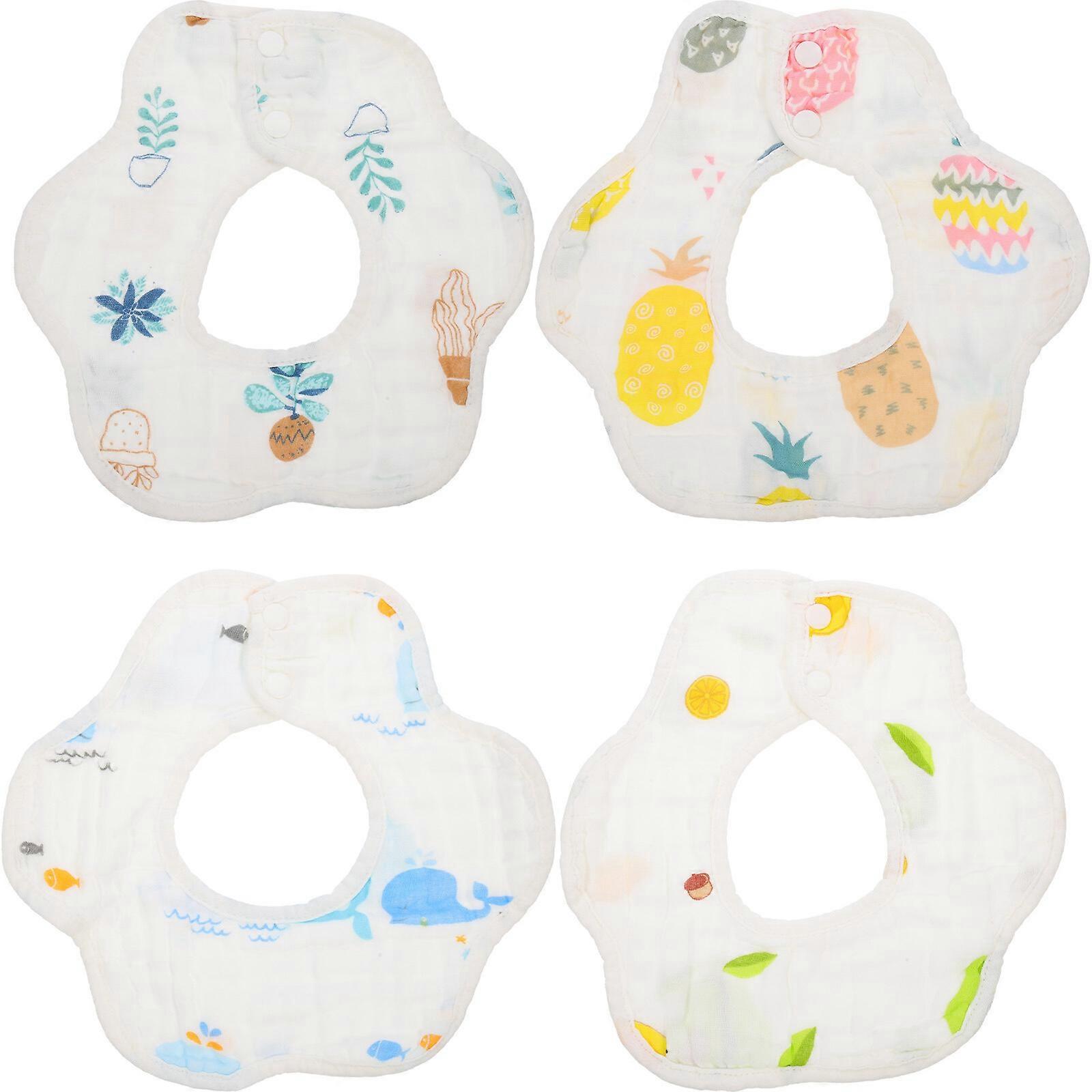 4Pcs Cotton Baby Bibs Cartoon Rotatable Baby Bibs Water Absorbing Infant Bibs
