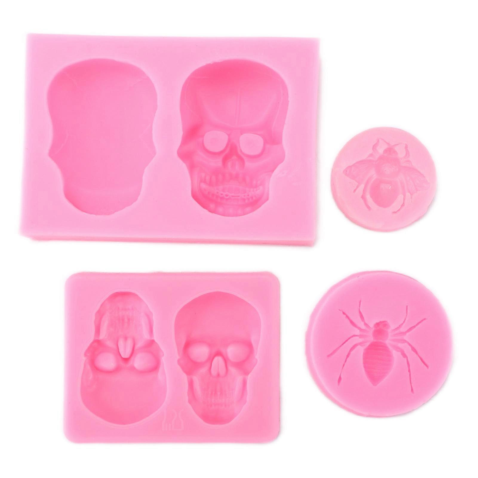 4Pcs Halloween Silicone Mold Skull Spider Shape Nonstick Durable Soft Halloween Cake Molds for Home Bakery