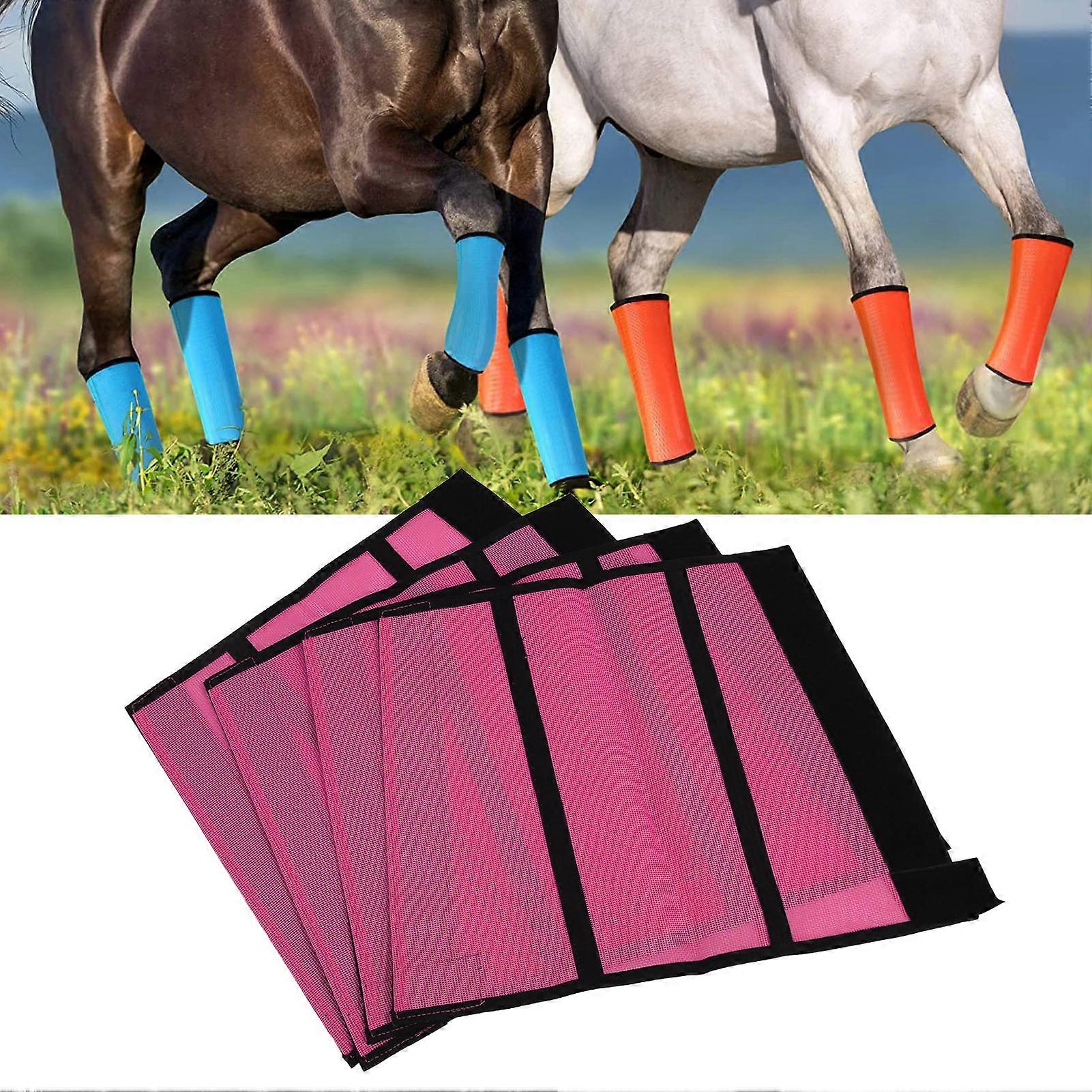 4Pcs Horse Fly Boots Breathable Comfortable Tear Resistant Fine Mesh Protective Horse Fly Leggings Leg Guards Rose Red