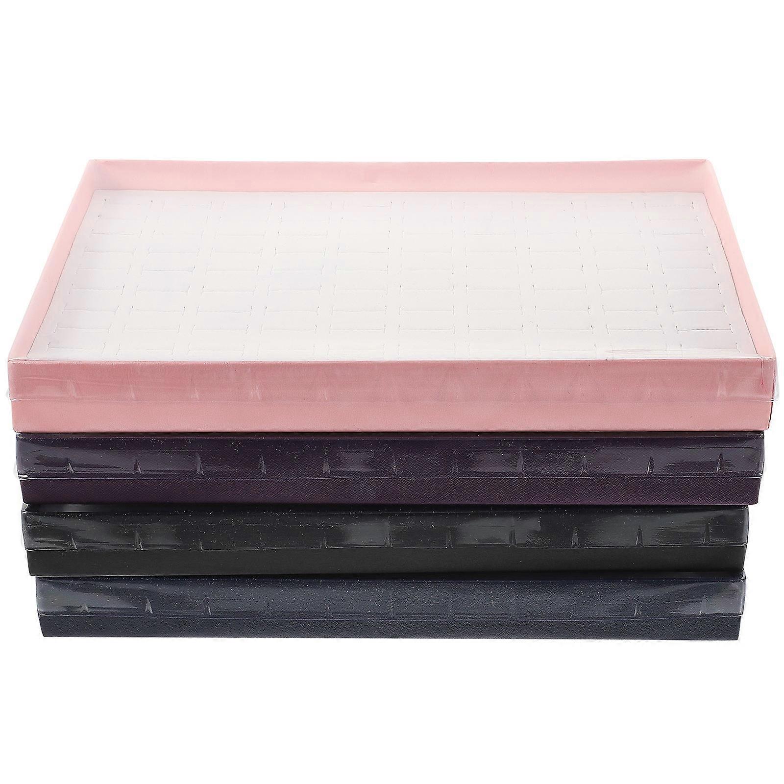 4pcs Ring Storage Trays with Slots Jewelry Organizer for Rings, Earrings & Brooches Stackable Display Pads for Home or Shop Use Black, Purple,