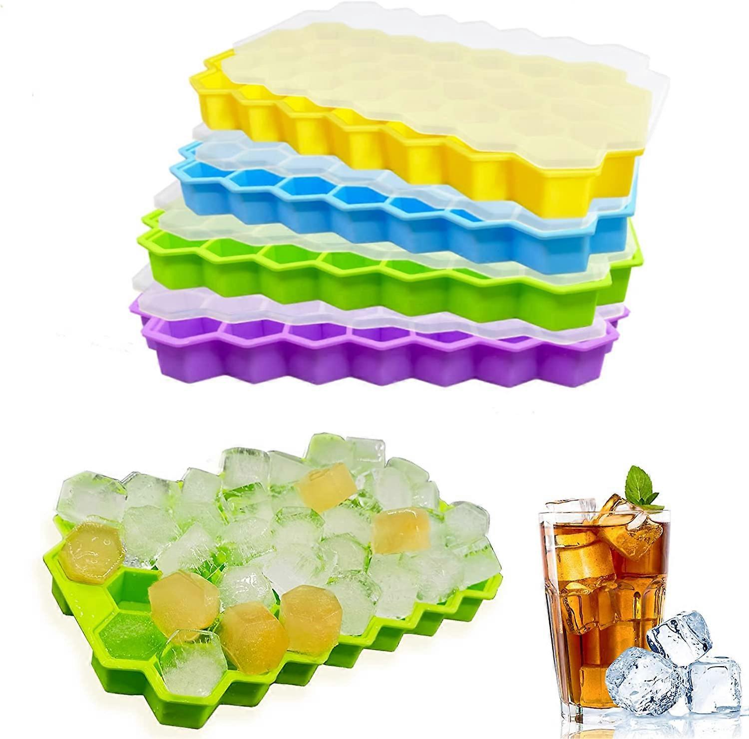 4 Pack Silicone Ice Cube Tray with Lids BPA Free, Easy Release Square Ice Trays