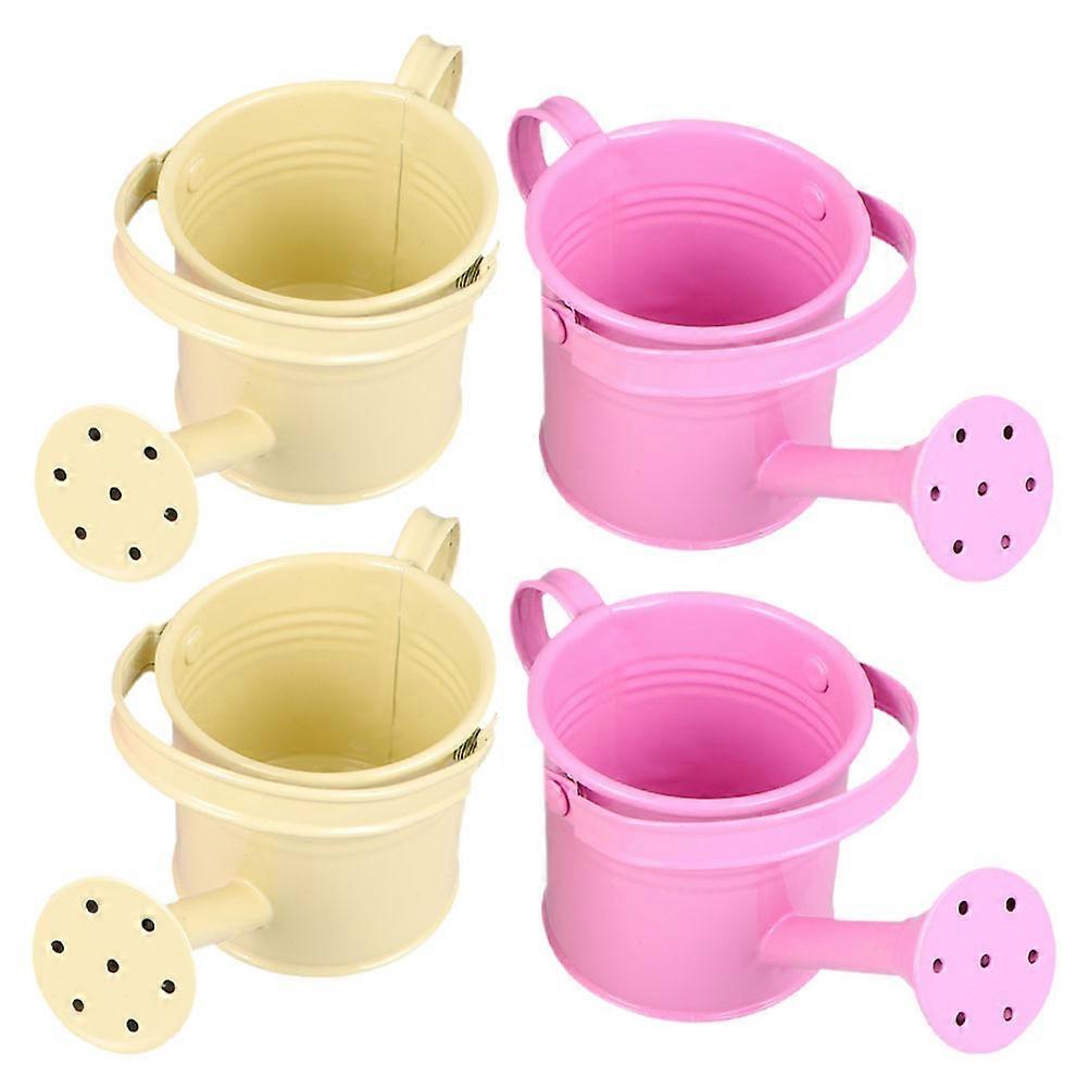 4pcs Small Metal Watering Can for Durable Iron Garden Pots – Beige & Pink, Indoor & Outdoor Use, Encourages Family Gardening Fun and Learning