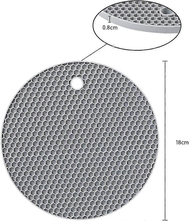 FDA-CERTIFIED HIGH-QUALITY SILICONE: Made from 100% FBA-free, ultra-flexible, FDA-approved food-grade silicone, the material will not stain, mold or absorb odors, can directly touch food. NON-SLIP & MULTI-FUNCTION nonWith its anti-slip and anti-scratch properties, it can be used as trivets, heating pads, potholders, trivets for pots, pans, and trays. Also use under plates, teapots, coffee cups, all hot containers. Honeycomb Pattern: 18.5*18.5cm(L x W) for all types of pans or pans and the thickness is 0.5cm. Honeycomb groove design, more safety to protect your hands from hot objects. It can be a good assistant for your kitchen. SET OF 4 TO CHOOSE: Whether you want to match your kitchen dcor or personality, ...