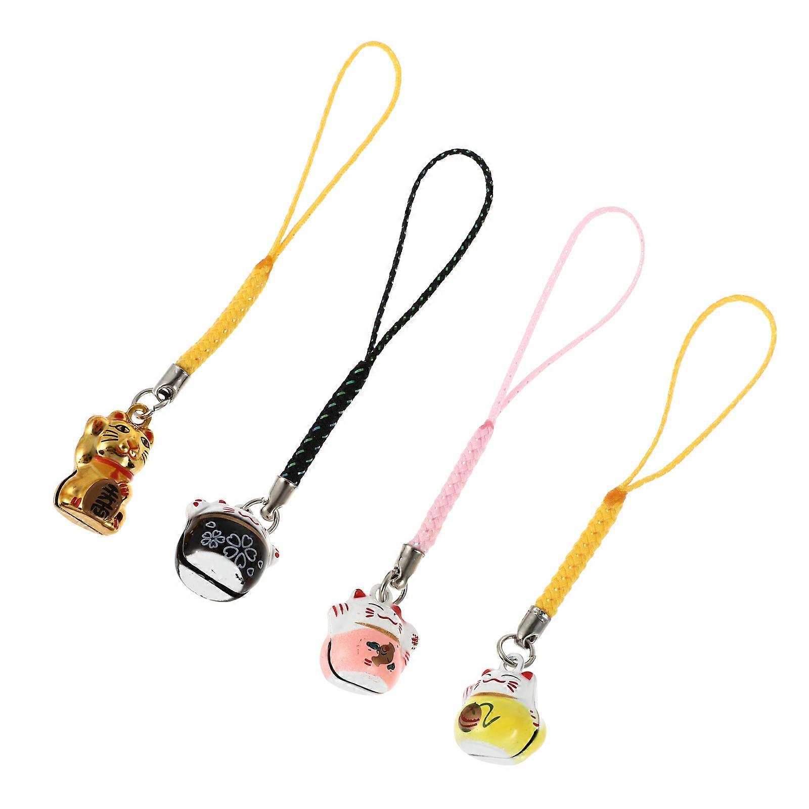 4Pcs Fortune Cat Keychain Key Ring Ornaments Fortune Cat Design Hanging Ornaments