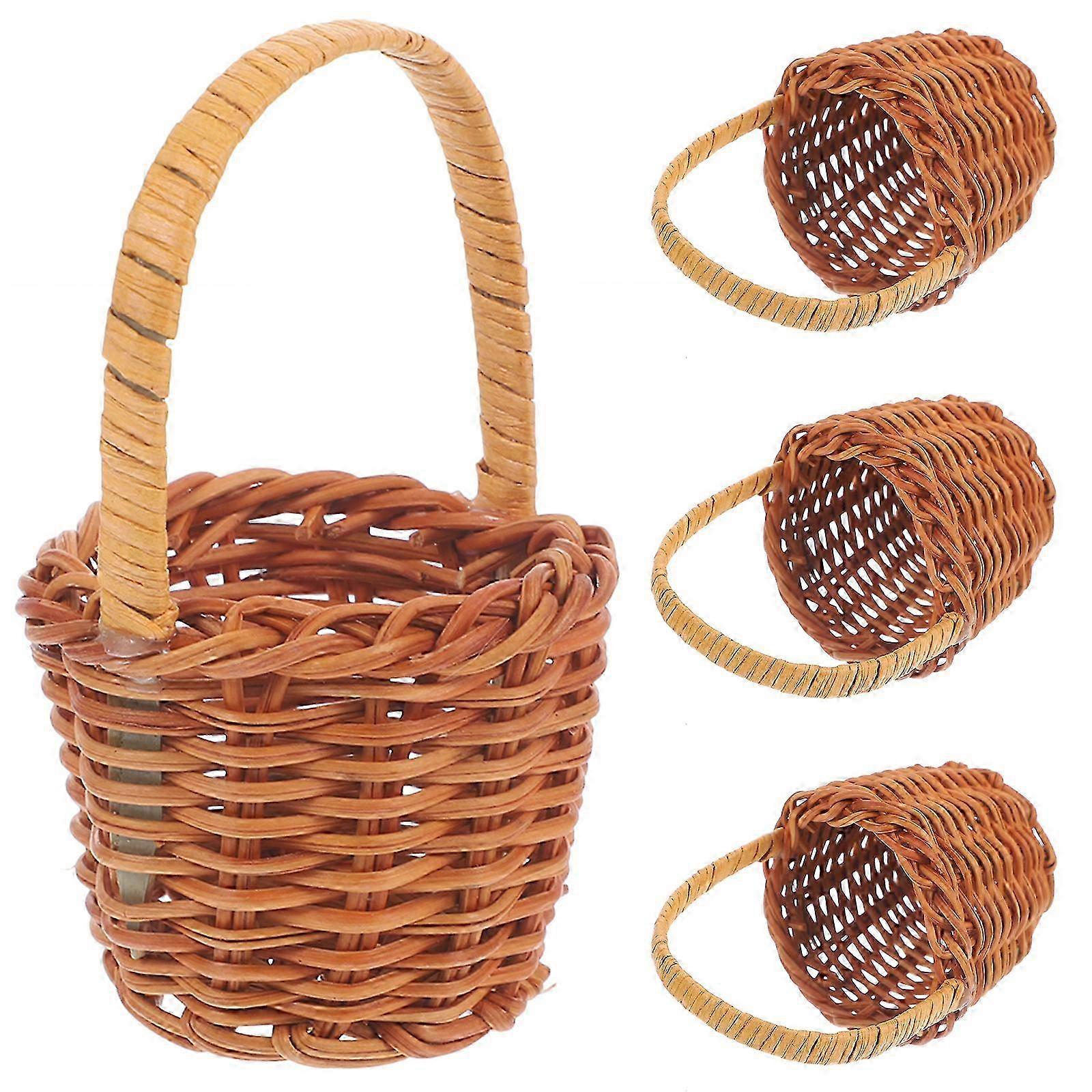 4pcs Mini Woven Baskets Small Rattan Flower Picnic Baskets 9X5.3X5.2CM