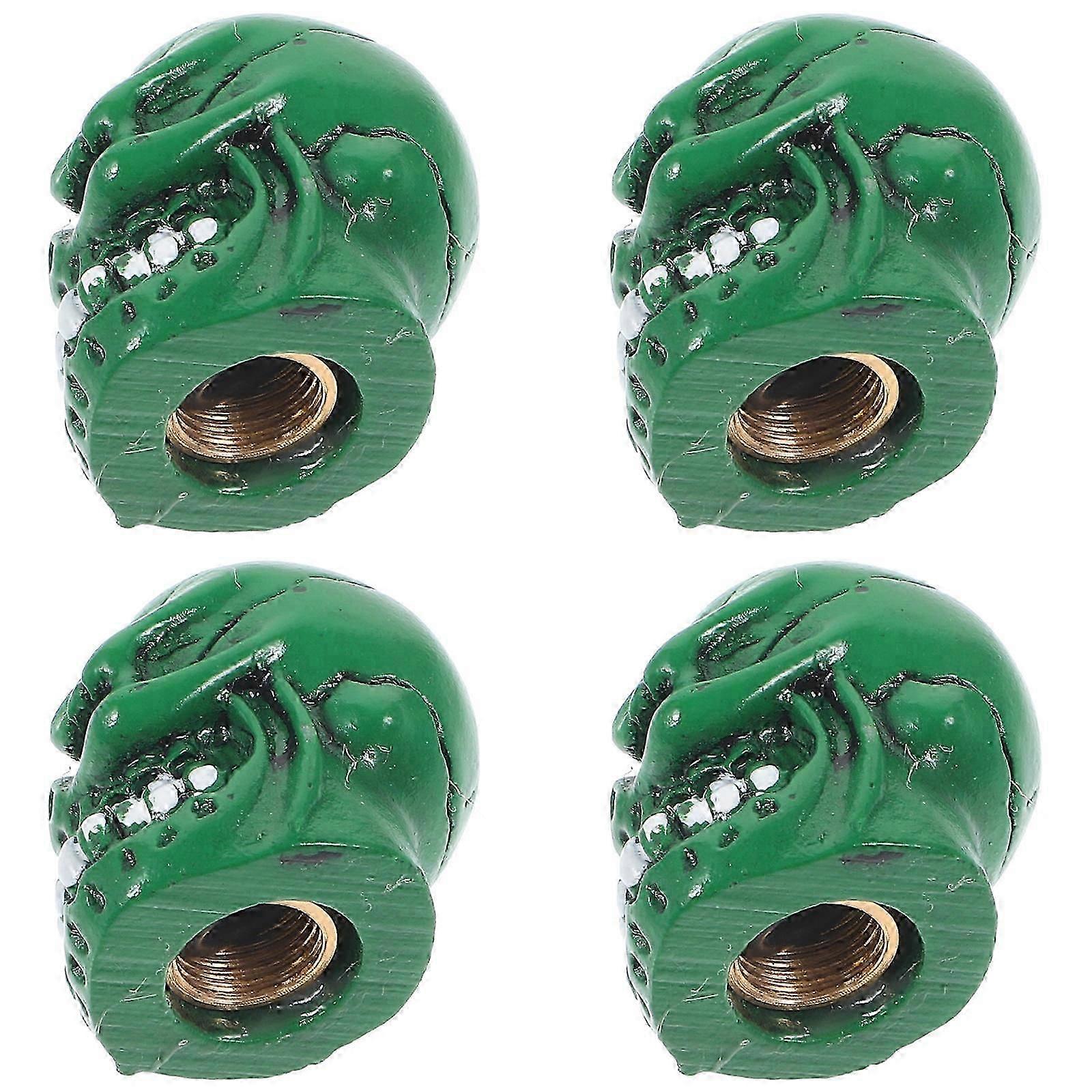 Cool Valve Stem Caps Reusable Valve Cap Car Tire Air Nozzle Cap Skull Shape Green Copper Prevent Air Leakage 4Pcs