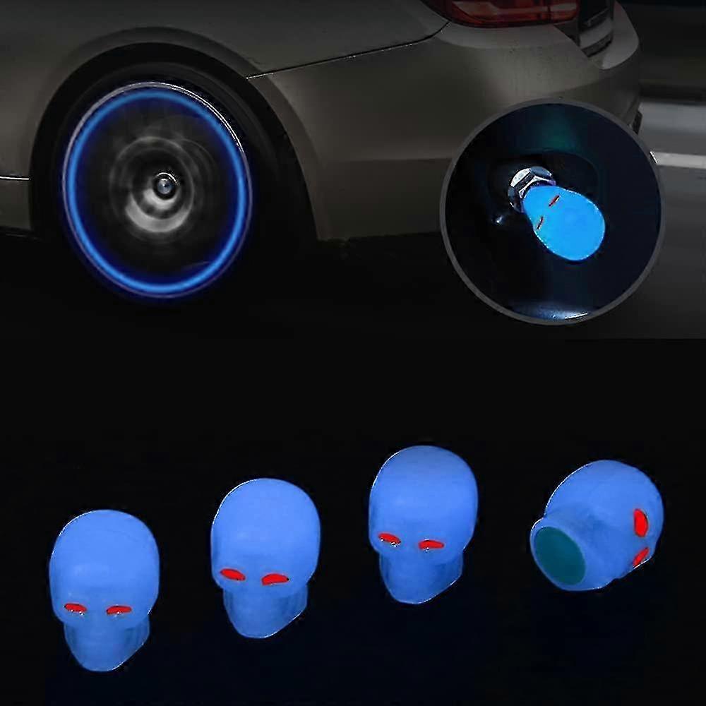 4pcs Car Tire Valve Stem Caps with Luminous Skull Decoration